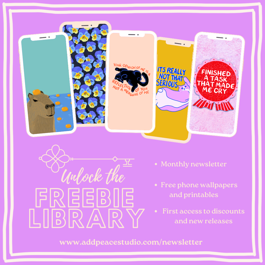 The Freebie Library is stocked with bright phone wallpapers, uplifting printables, and is always expanding!